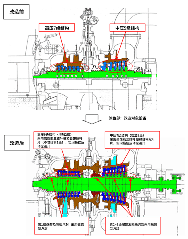 圖中所示汽輪機的效率提升采用了以下4種技術(shù):