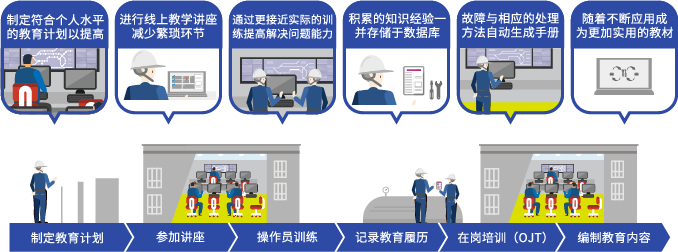 自動(dòng)收集發(fā)生的實(shí)際故障及問(wèn)題,制定與員工個(gè)人水平相符的教育計劃,編制教育內容。實(shí)際故障及相應的處理方法被分類(lèi)分組記錄下來(lái),可以自動(dòng)生成培訓手冊,留存寶貴知識經(jīng)驗。利用實(shí)際案例,配合線(xiàn)上教學(xué)講座(e-learning)、模擬訓練、在崗培訓(OJT)這三種學(xué)習方法,增加實(shí)務(wù)經(jīng)驗,提升業(yè)務(wù)水平。