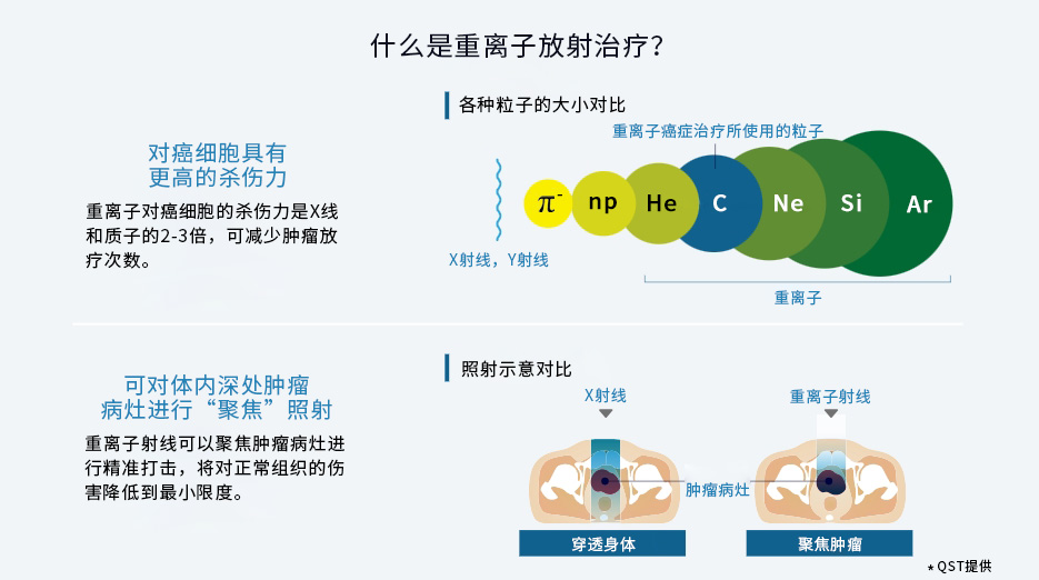 重離子癌癥放射治療通過(guò)同步加速器將碳離子加速到光速的70%,碳離子射線(xiàn)照射至腫瘤病灶進(jìn)行精準照射。它兼具物理和生物學(xué)的優(yōu)勢,離子射線(xiàn)的“布拉格峰”特性,充分體現了劑量集中性?xún)?yōu)勢,射線(xiàn)可聚焦腫瘤病灶減少對周?chē)=M織的傷害。重離子的生物效應是傳統X線(xiàn)和質(zhì)子的2~3倍,對癌細胞的殺傷效果更強,可切斷癌細胞DNA的雙鏈、有效阻止癌細胞的修復,對于部分抗拒光子甚至質(zhì)子射線(xiàn)的腫瘤有著(zhù)更好的療效。