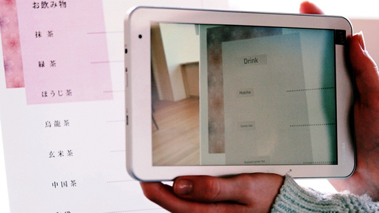 除了語(yǔ)音識別、交互、翻譯等功能,東芝還開(kāi)發(fā)了將可視文字信息即時(shí)翻譯成其他語(yǔ)言的技術(shù)。想象一下,人們出國旅行,來(lái)到一家以美味著(zhù)稱(chēng)的餐館,卻往往被菜單上的異國文字搞得一頭霧水,如果菜單上又沒(méi)有圖片,根本不知道該如何點(diǎn)菜,而東芝的“RECAIUS™”可幫你擺脫這個(gè)困境,拿起智能手機對準菜單進(jìn)行拍攝,東芝“RECAIUS™”可以瞬間把菜品翻譯成母語(yǔ),讓你輕松點(diǎn)菜。