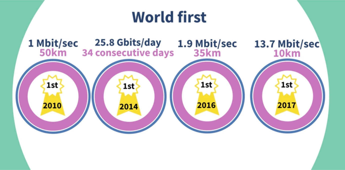 2014年,東芝通過(guò)45公里長(cháng)的光纖連續34天每天發(fā)送25.8千兆比特數據,實(shí)現了穩定的大容量量子密鑰分發(fā)。隨后,我們還經(jīng)由網(wǎng)絡(luò )進(jìn)行了更龐大的數據包傳輸。其實(shí),早在2010年,東芝就已在50公里的距離上實(shí)現了每秒1兆比特的數據傳輸。2016年,我們在35公里的距離上將傳輸速度提升至每秒1.9兆比特。2017年,又在10公里距離上實(shí)現每秒13.7兆比特的傳輸。傳輸速度的快速提升大大拓展了量子密鑰分發(fā)的發(fā)展邊界。