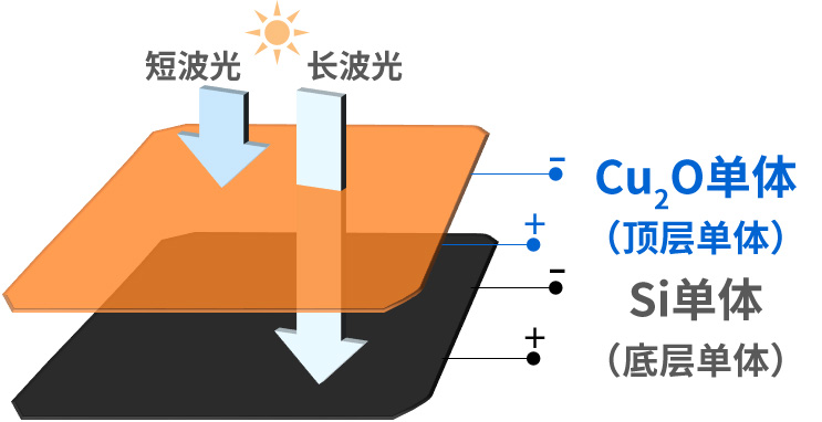 東芝的串聯(lián)型太陽(yáng)能電池將Cu?O材料(氧化亞銅)電池和傳統硅材料電池組相結合,其中Cu?O材料實(shí)現了全球最高發(fā)電效率8.4%。